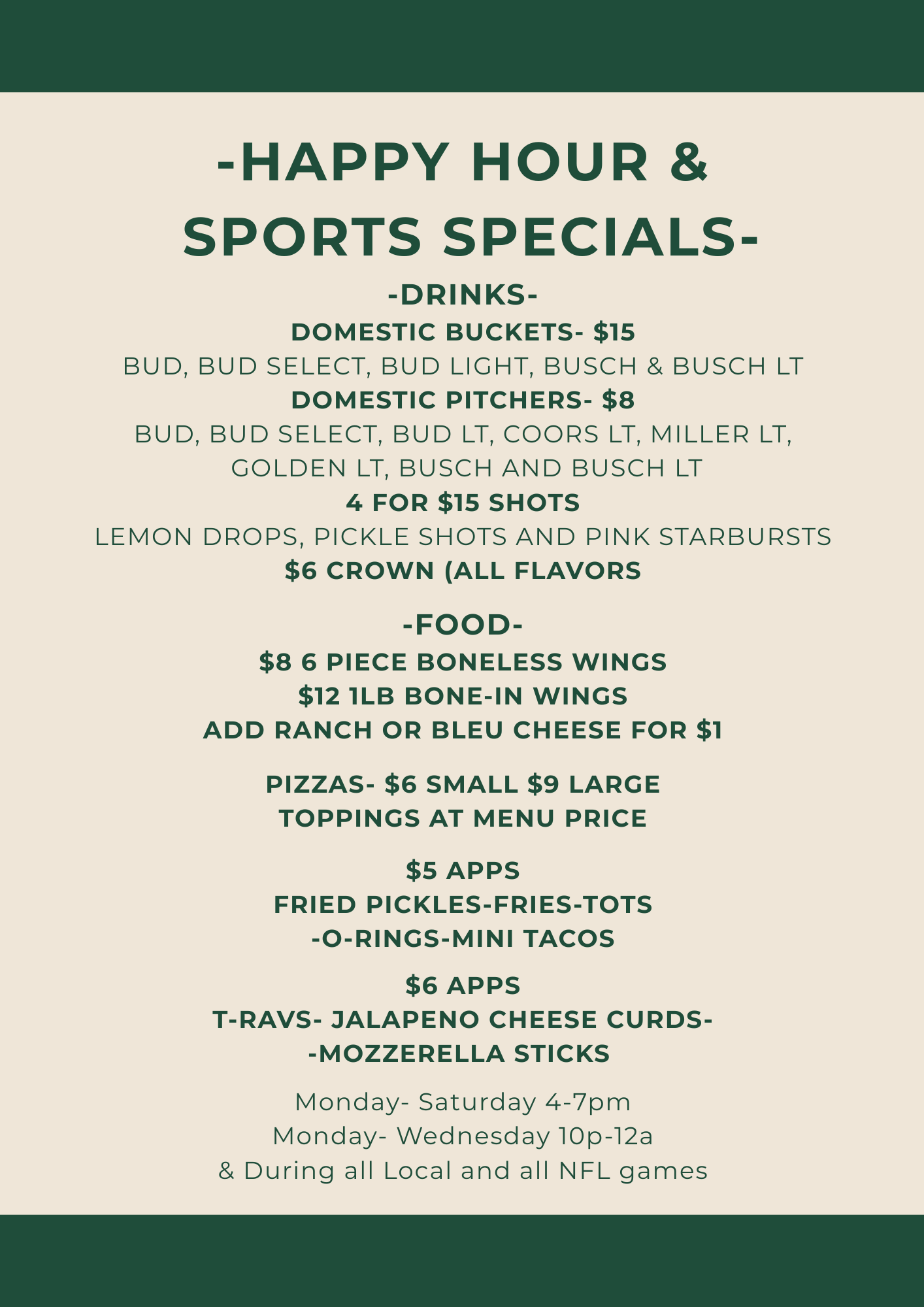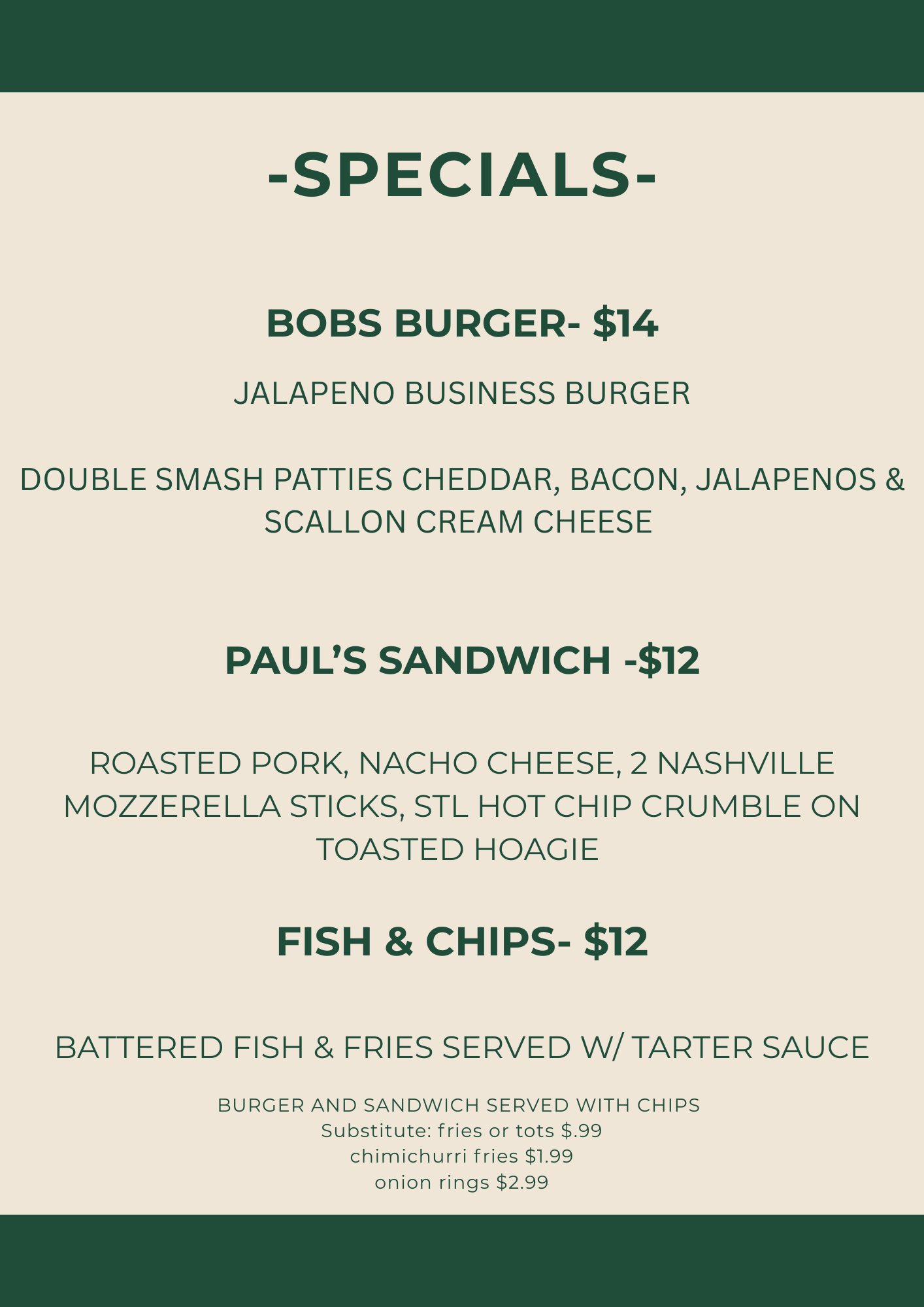 *ALL SPECIALS SUBJECT TO CHANGE WITHOUT WARNING*
